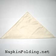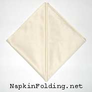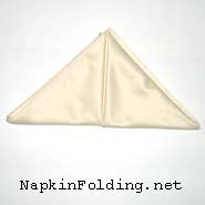 1. Fold the bottom corner of the napkin up to the top corner to form a triangle.